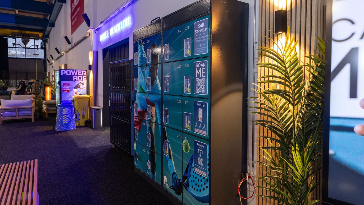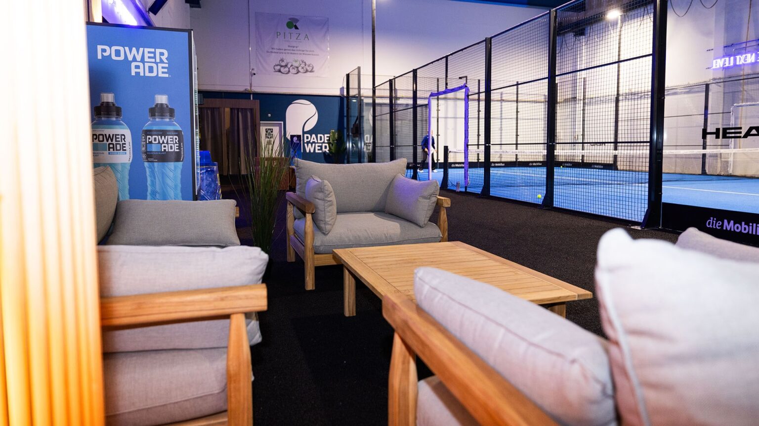 In unserer Lounge mit Selbstbedienung findest du gekühlte Getränke und kleine Snacks. Garderoben und Duschen stehen dir jederzeit zur Verfügung. Schläger kannst du bequem vor Ort mieten oder kaufen. Neue Bälle erhältst du direkt in der Halle.